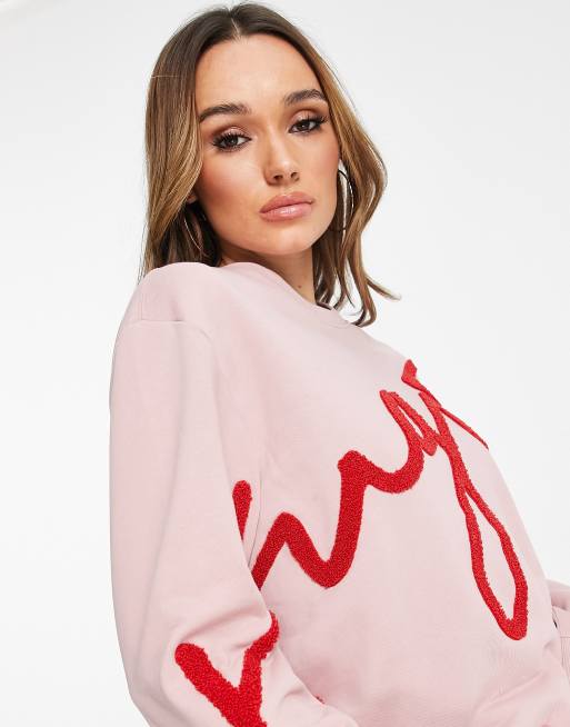 HUGO Diraffe Boyfriend Sweatshirt in Pastellrosa mit Very well made.