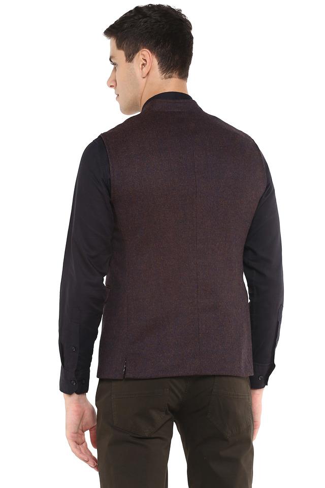 Buy LOUIS PHILIPPE Maroon Mens Mandarin Collar Slub Nehru Jacket Very well made.