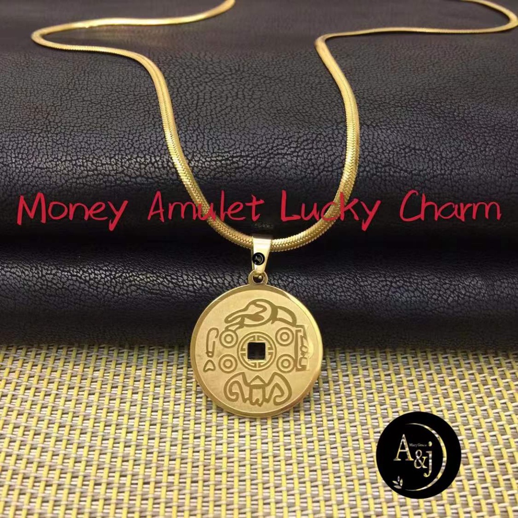 A J Gold plated Stainless Steel Money Amulet lucky charm pendant Very well made.