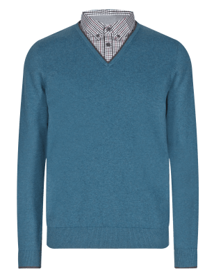 Cotton Rich Mock Layer Shirt Jumper M S Collection M S Very well made.
