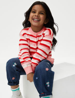 Pure Cotton Striped Knitted Cardigan 2 8 Yrs Very well made.