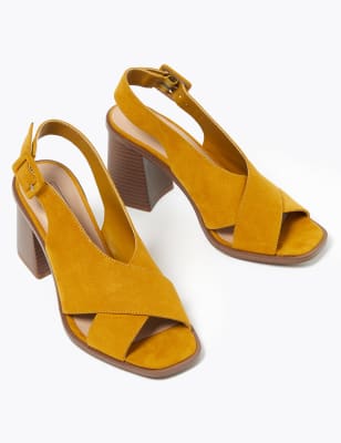 M S COLLECTION YELLOW ANKLE STRAP LADIES SANDALE HEEL SHOES UK 6.5 EU 39.5 Very well made.