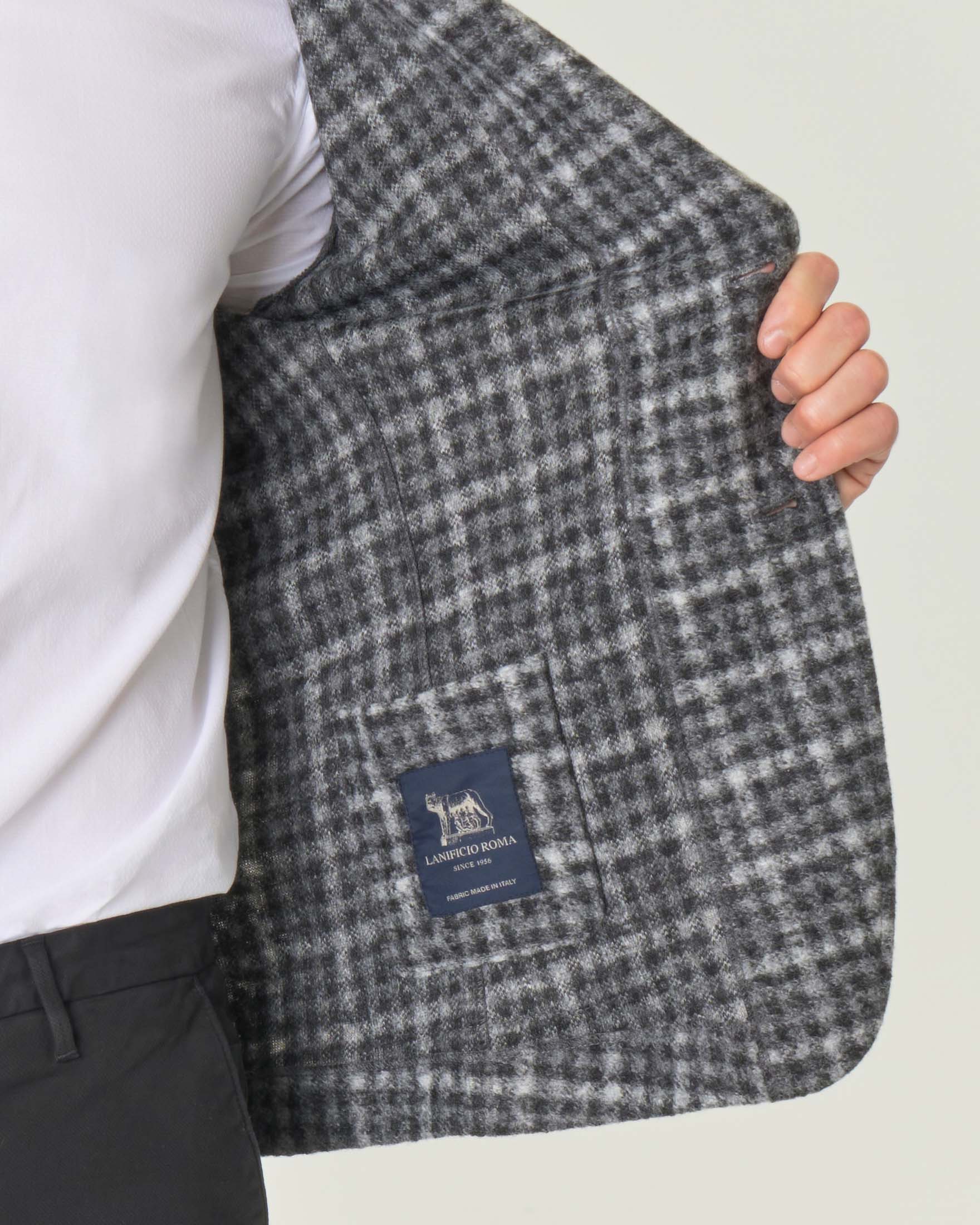Giacca maglia in tessuto di misto lana a quadretti grigi bianchi e Very well made.
