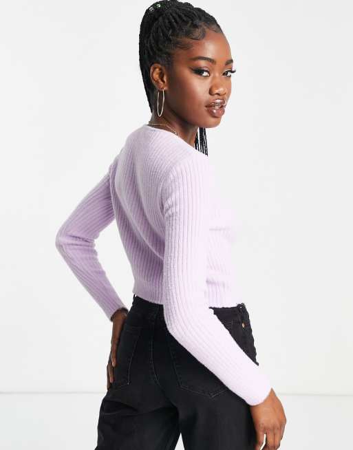 Bershka Cardigan corto in maglia lilla con bottoni Very well made.
