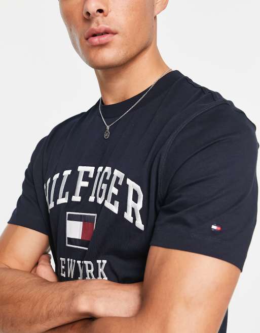 Tommy Hilfiger Modern T shirt in cotone blu navy con logo stile college Very well made.