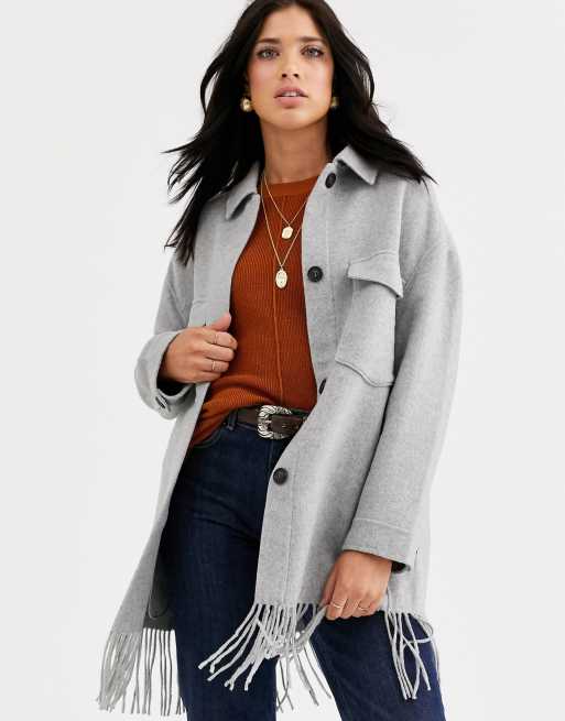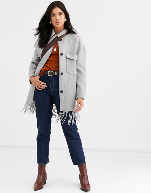 Mango fringe hem pocket detail jacket in gray Very well made.
