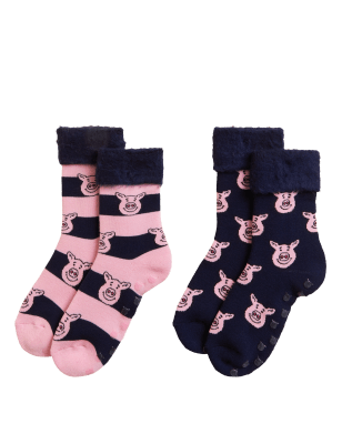 M S Womens 2pk Percy Pig Slipper Socks 6 8 Navy Mix Navy Mix Very well made.