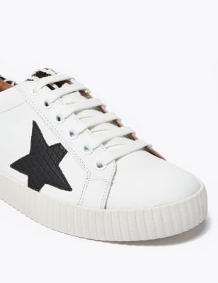 Leather Lace Up Star Print Trainers M S Collection M S Very well made.