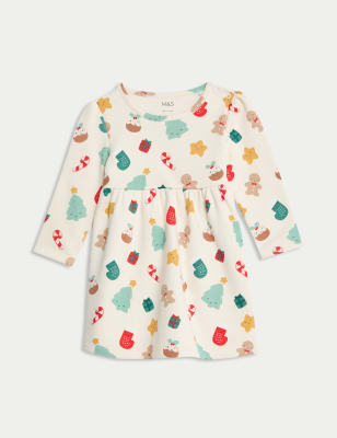 Cotton Rich Christmas Print Dress 0 3 Yrs M S SG Very well made.