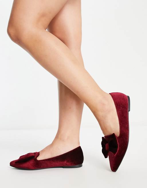 ASOS DESIGN Wide Fit Lake bow pointed ballet flats in burgundy velvet Very well made.