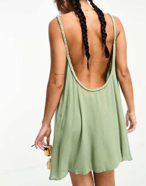 MSemis Woman s Metallic Hologram Shiny Flared Mini Dress Holographic Backless A line Skater Swing Dress Very well made.