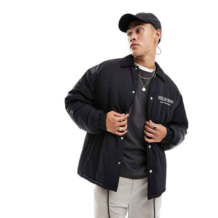 Men s Collared Coach Jacket Boohoo UK Very well made.