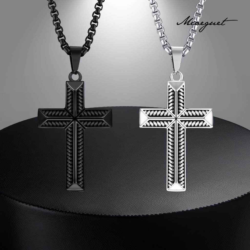 Meaeguet Black Cross Necklace For Men Rope Pattern Stainless Steel Very well made.