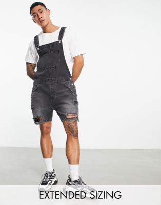 ASOS DESIGN short denim dungarees in washed black with heavy rips Very well made.