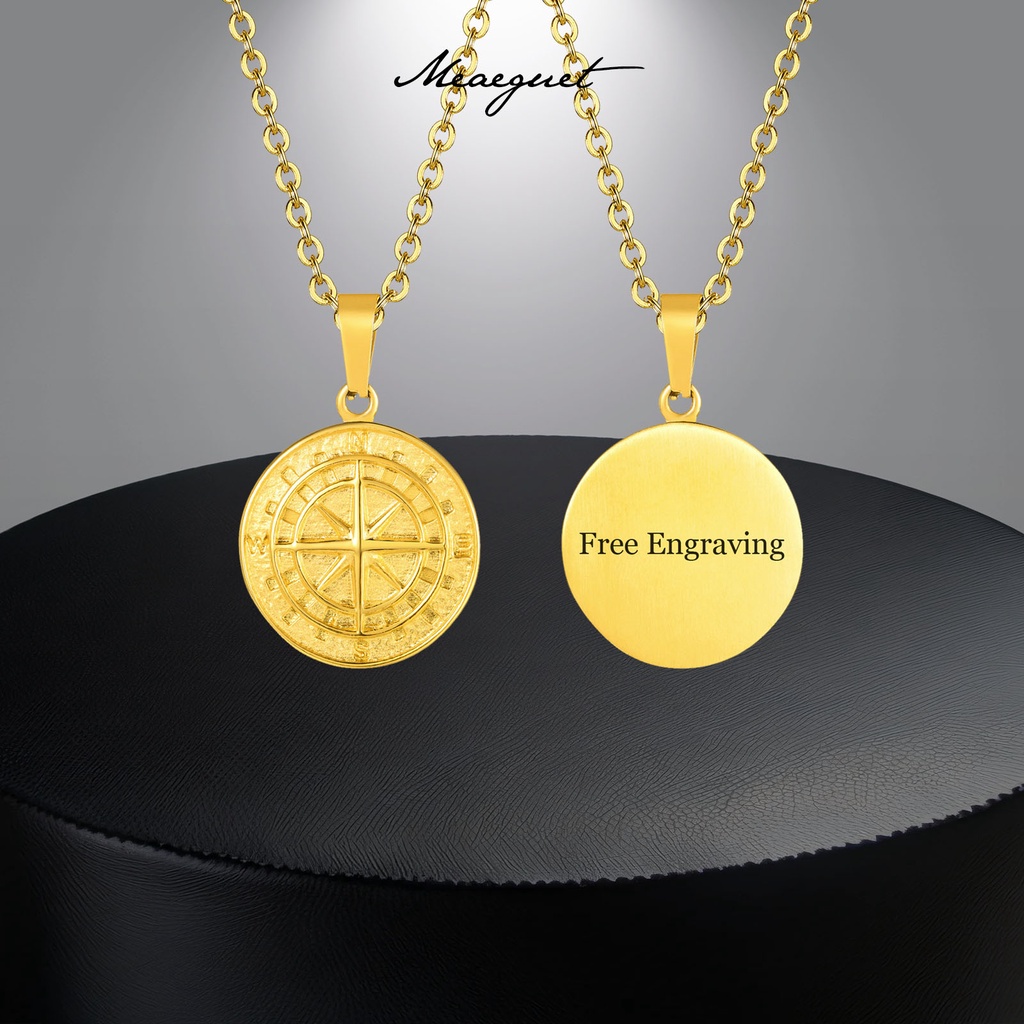 Meaeguet Free Engraved Gold Plated Necklace Stainless Steel Gold Very well made.