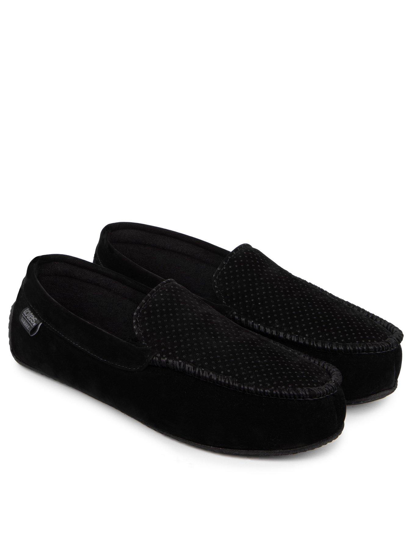 Totes Isotoner PERFORATED SUEDETTE Moccasin Slippers Mens Black Very well made.