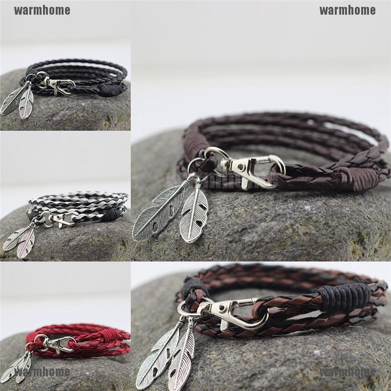 WHSG New Bangles Men Jewelry Accessories PU Leather Feather Charm Very well made.