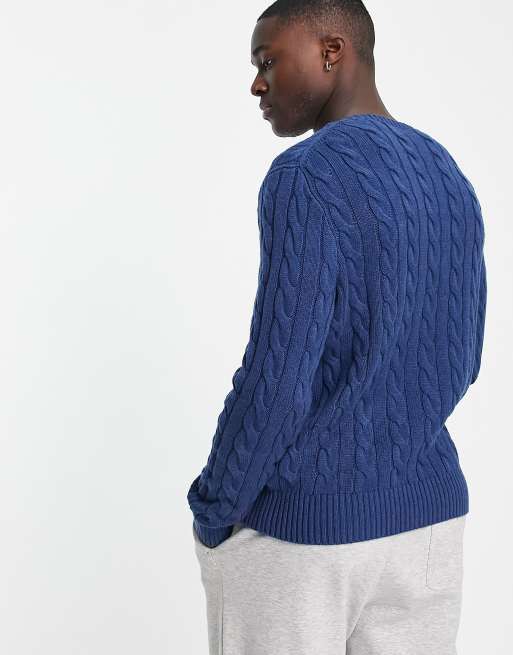 Polo Ralph Lauren icon logo cable cotton knit jumper in navy marl Very well made.