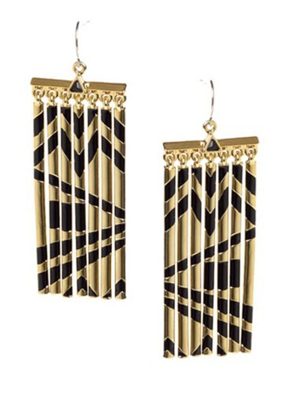 Open Hoop with Textured Metal Bar Fringe Dangle Statement Earring Very well made.
