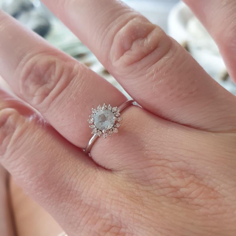 Ring with Aquamarine and Diamonds in 10kt White Gold Very well made.