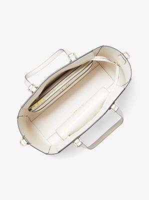 Michael Kors Kimberly Small Bonded Tote Bag Bright White Black Very well made.
