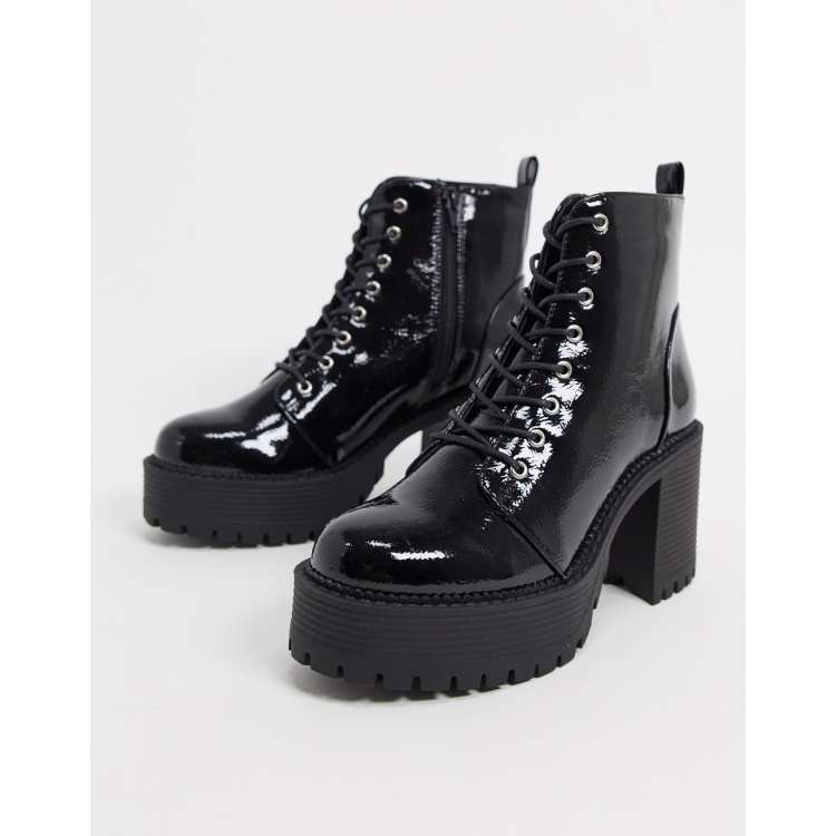 Truffle Collection chunky lace up heeled military boots in black Very well made.