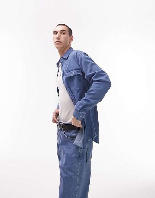 Topman long sleeve stretch denim shirt in mid wash blue Very well made.