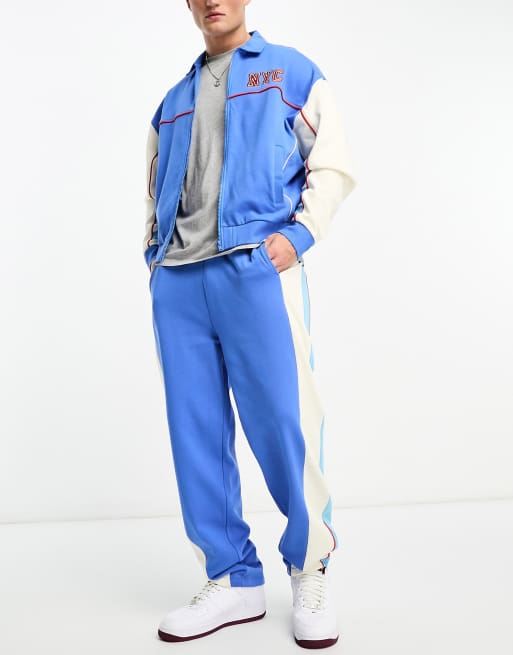 ASOS DESIGN co ord straight leg joggers in blue colour block Very well made.