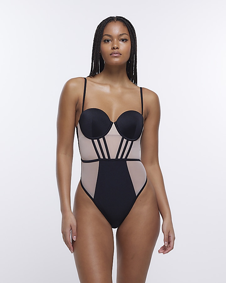 High Neck Mesh Insert Control Swimsuit Black Pour Moi Very well made.