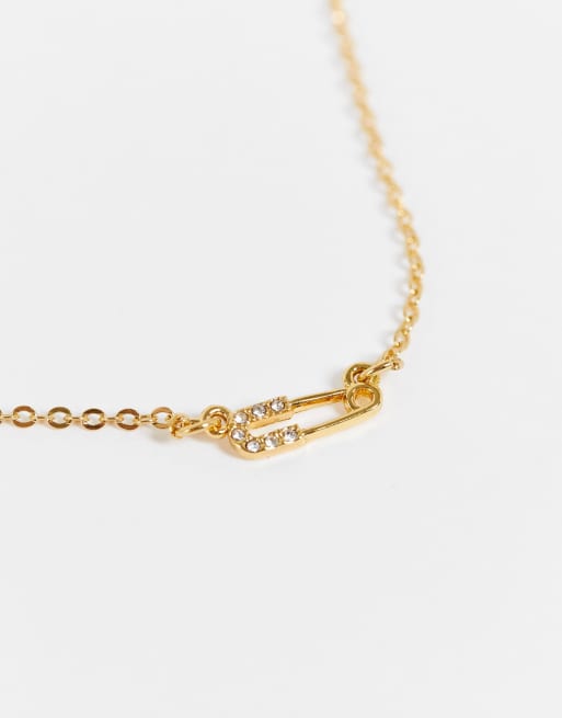 ASOS DESIGN 14k gold plated necklace with mini safety pin Very well made.