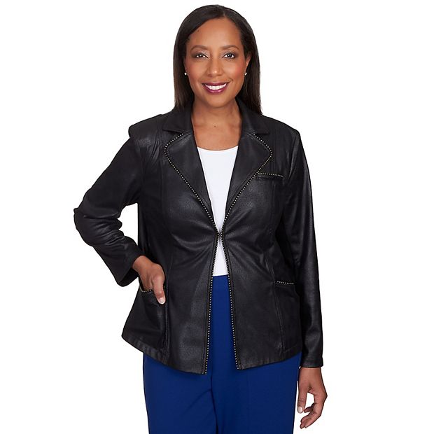 Alfred Dunner Petite Park Place Faux Leather Blazer Jacket Very well made.