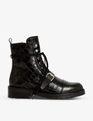 ALLSAINTS Womens Brown Snake Print Lace Up Toe Cap Padded Buckle Very well made.