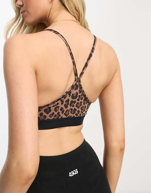Nike Training Dri FIT Indy v neck sports bra in lepoard print Very well made.