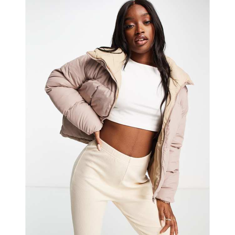 Threadbare Frankie puffer jacket with contrast lining in taupe ASOS Very well made.