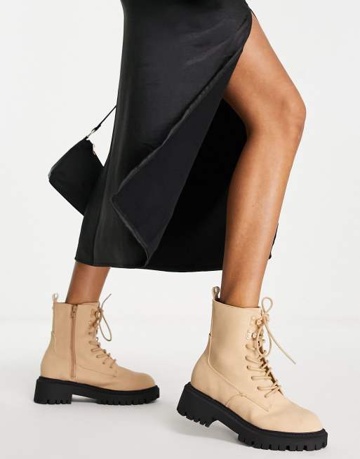 Office affected chunky lace up ankle boots in beige Very well made.