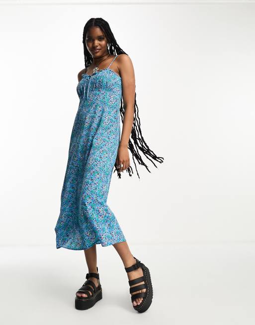 Only bust detail maxi cami dress in blue ditsy floral Very well made.