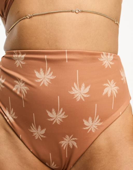 ASOS DESIGN high leg high waist bikini bottom in brown palm tree print Very well made.