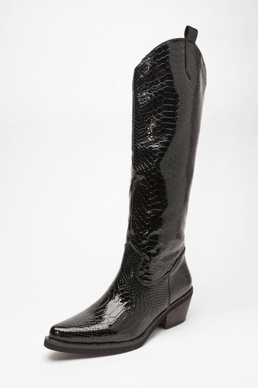 Black Faux Patent Leather Snake Print Western Boots Quiz Clothing Very well made.