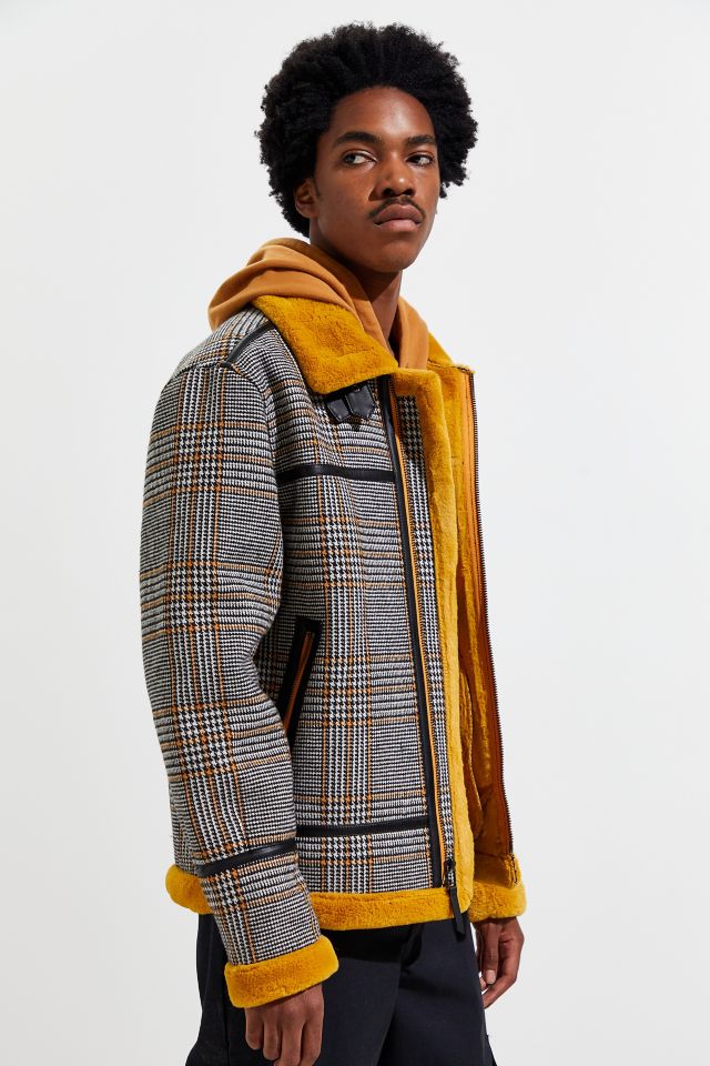 UO Plaid Faux Shearling B3 Bomber Jacket Urban Outfitters Canada Very well made.