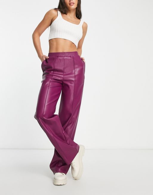 ASOS DESIGN Tall straight faux leather jogger pants in plum Very well made.