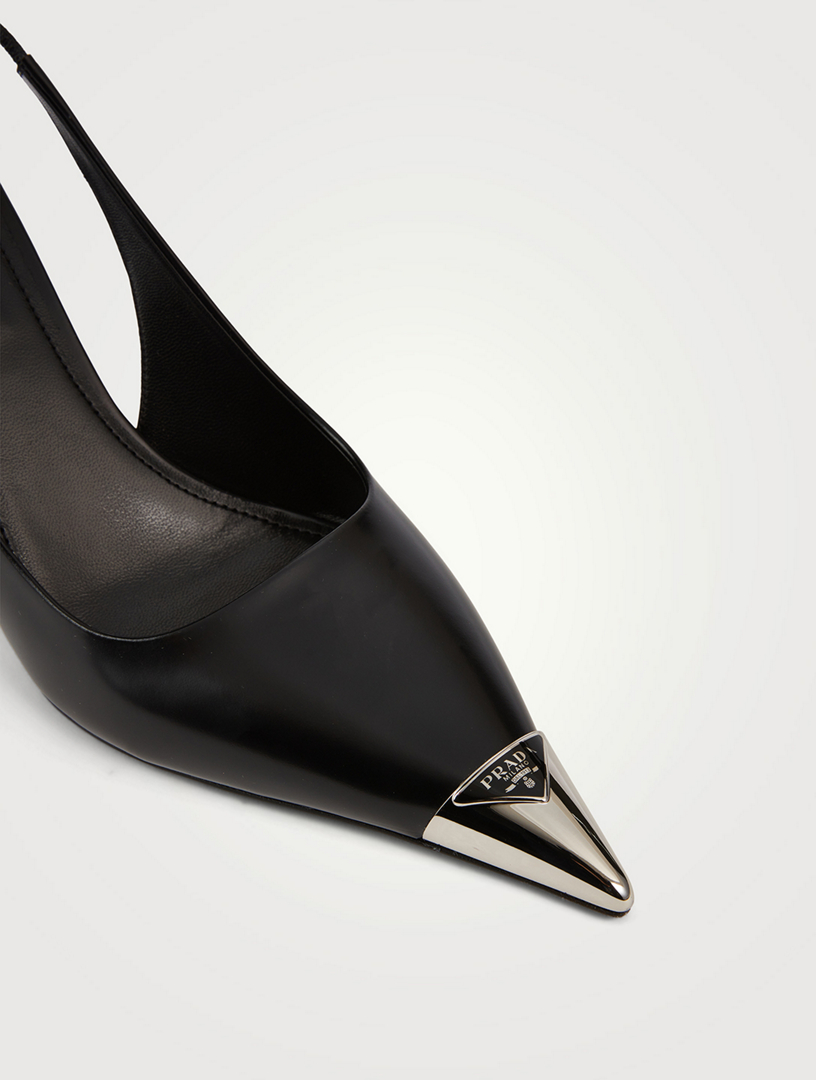 Black Brushed Leather Slingback Pumps PRADA Very well made.