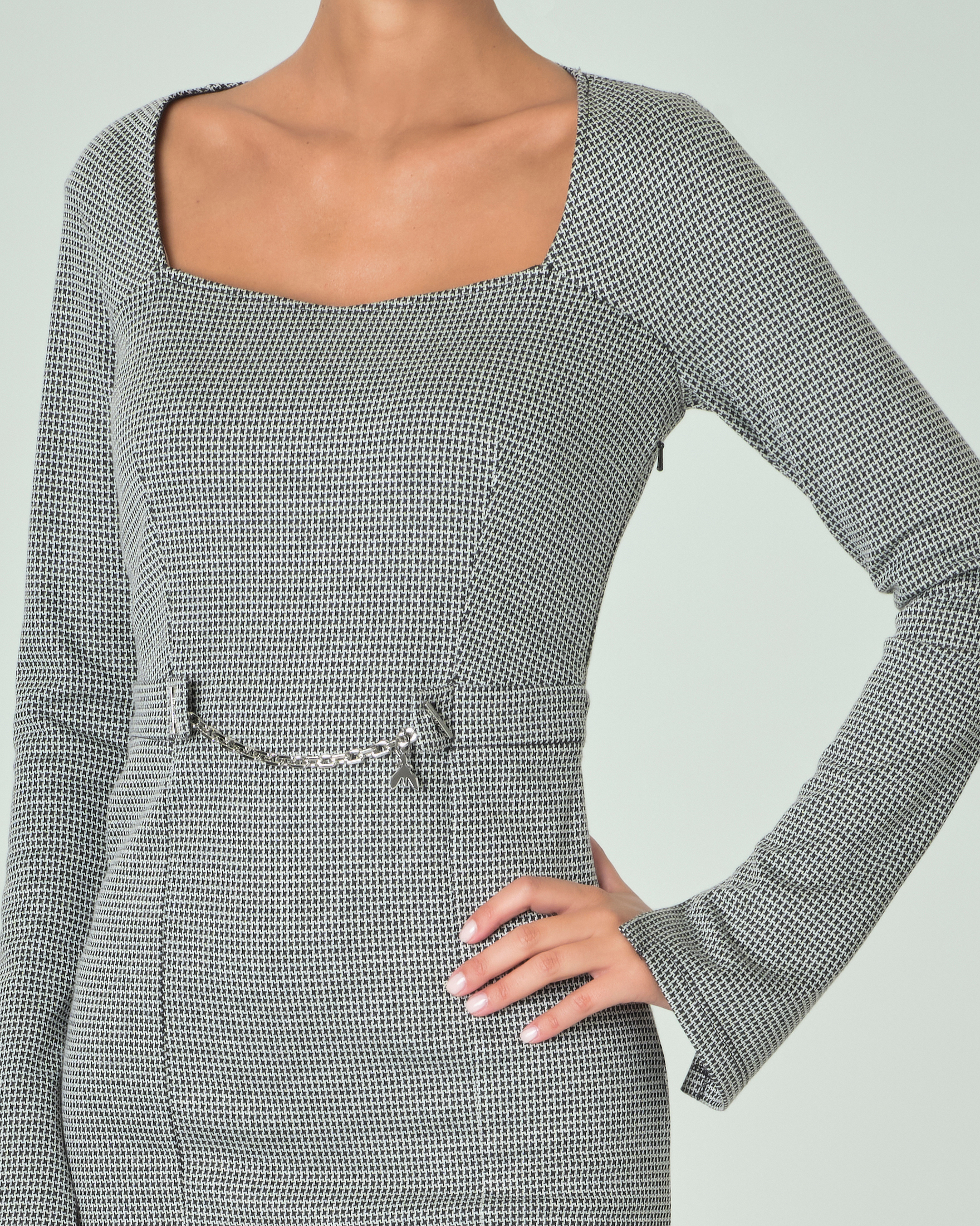 Abito corto a fantasia pied de poule in misto viscosa con scollo Very well made.