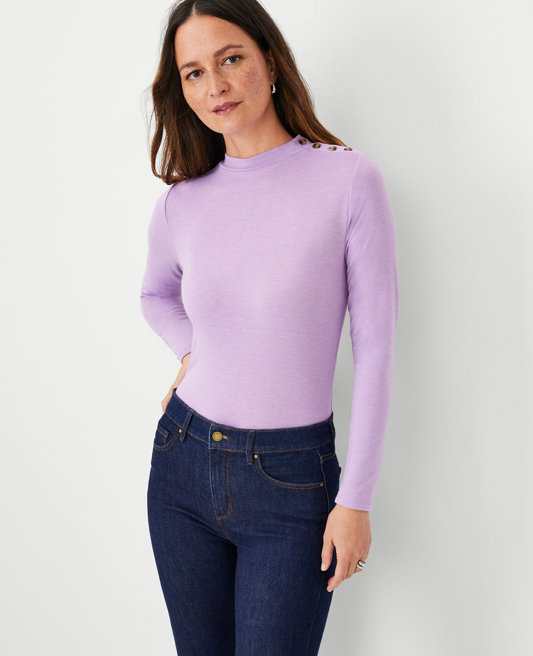 The Rickie Purple Ribbed Mock Neck Long Sleeve Top Very well made.