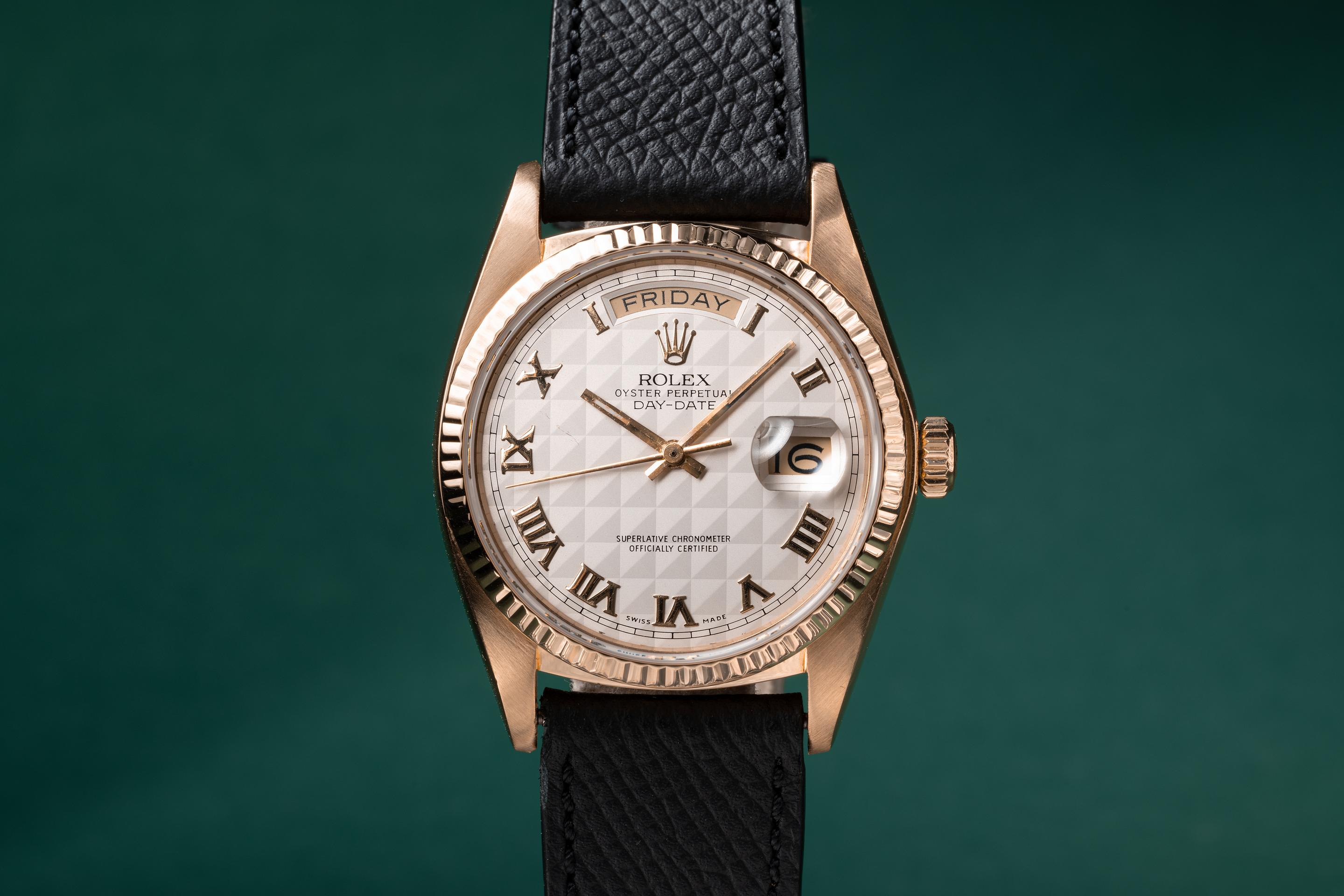 Tropical Watch 1980 Rolex 18K YG Day Date 18038 Cream Pyramid Dial Very well made.