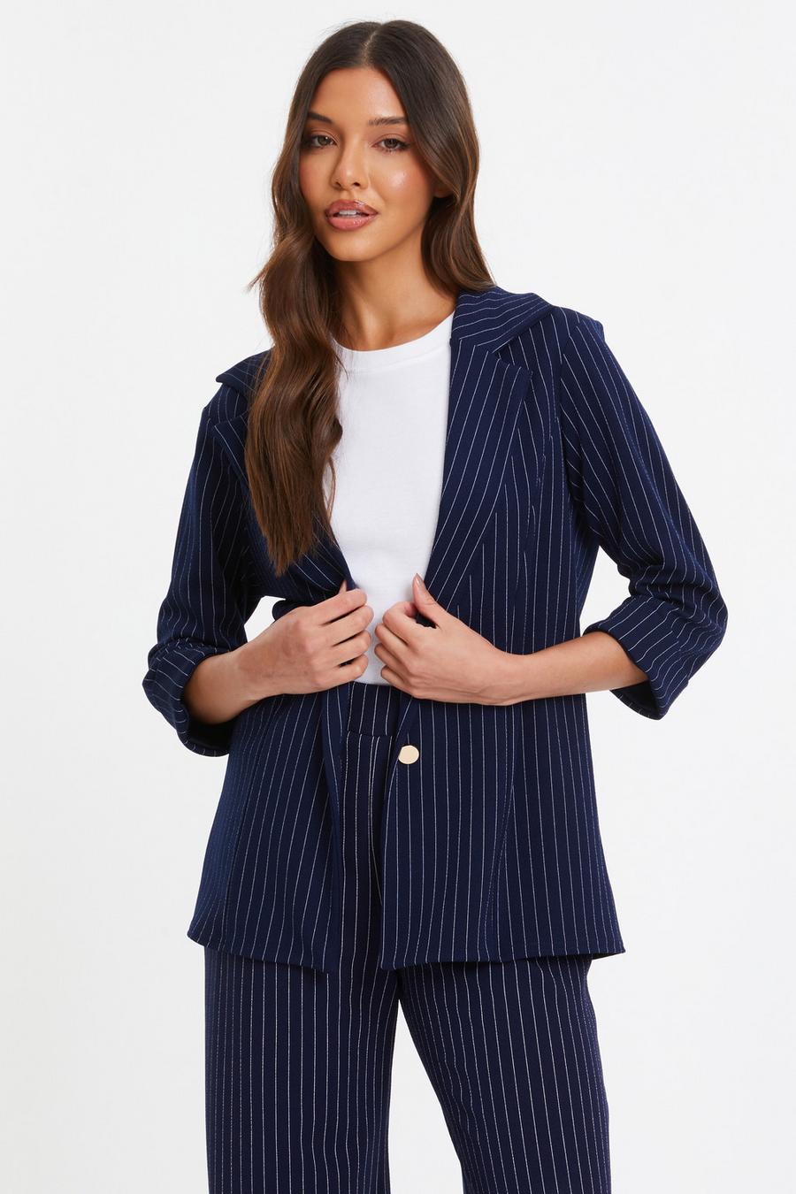 Navy Pinstripe Ruched Sleeve Blazer Quiz Clothing Very well made.