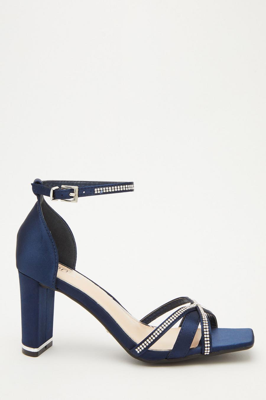 Navy Satin Cross Strap Heeled Sandals Quiz Clothing Very well made.