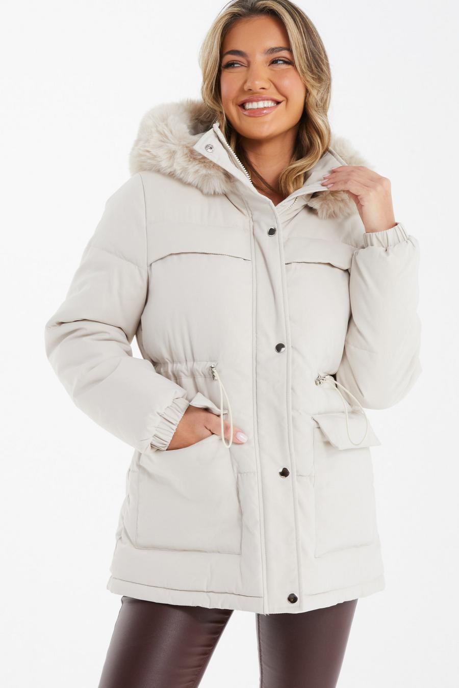 Stone Padded Faux Fur Hood Jacket Quiz Clothing Very well made.