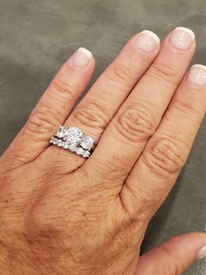 Diamonique 3.50 cttw 3 Stone Ring Platinum Clad QVC Very well made.
