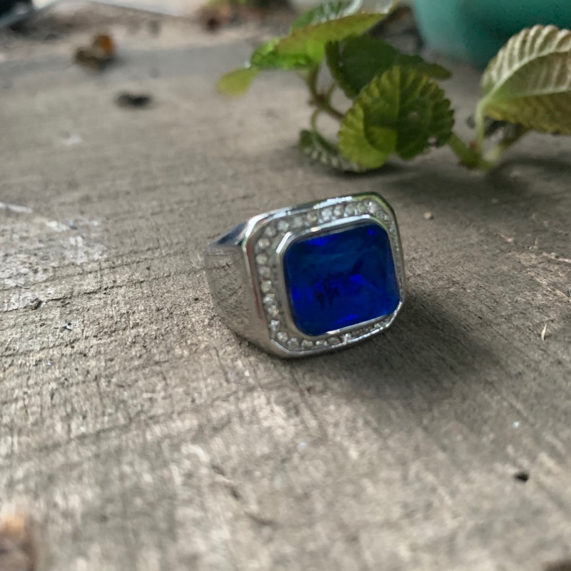 Men s Ring Blue Sapphire Ring Luxury Titanium Real Anti Fade And Very well made.