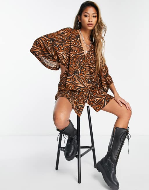 Topshop kimono sleeve mini dress in animal print ASOS Very well made.